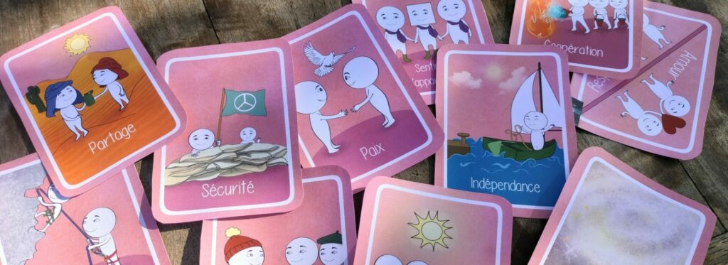 - Choisir une carte « valeur » qui nous parle. Si cette valeur n’était pas présente dans la société, que se passerait-il ? Si je défend cette valeur, qu’est-ce que je risque ?